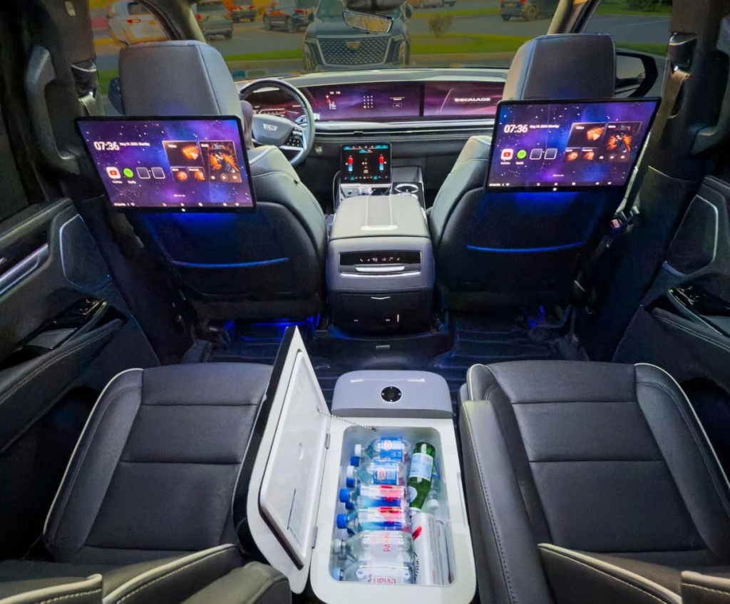 We believe the journey should be as enjoyable as the destination. That's why we offer thoughtful touches to enhance your ride. In our selected SUVs , enjoy a built-in cooler stocked with premium bottled water, sodas, sparkling water, and complimentary gum to keep you refreshed. Stay connected with in-vehicle phone chargers, and let us know if you'd like to make it extra special by adding from a gorgeous flower bouquet or champagne.